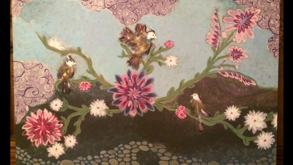 Abstraktny obraz s pierkami. Cena €110,- s postovnym aj balnym